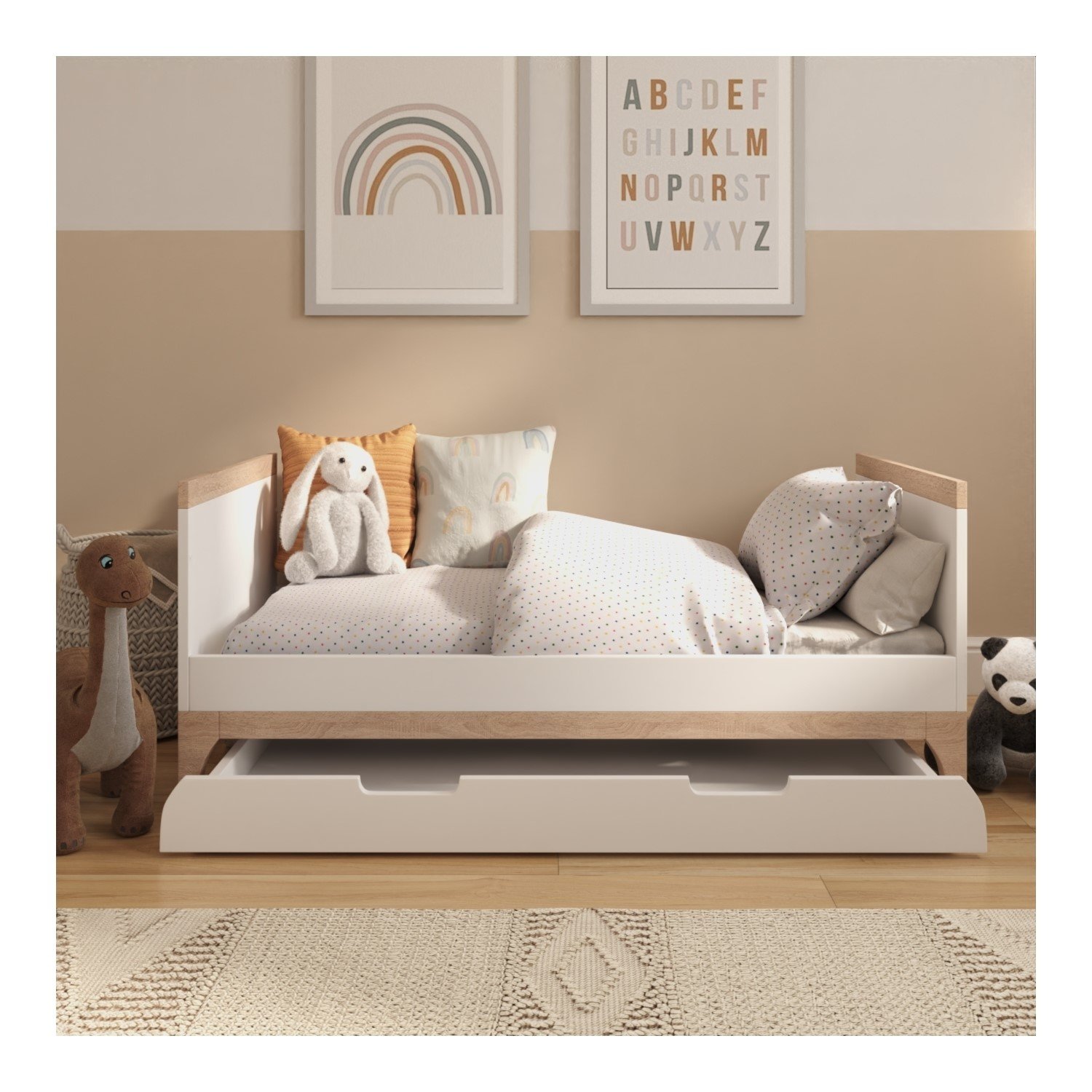 1 x White and Pine Convertible Cot Bed with Storage Drawer
