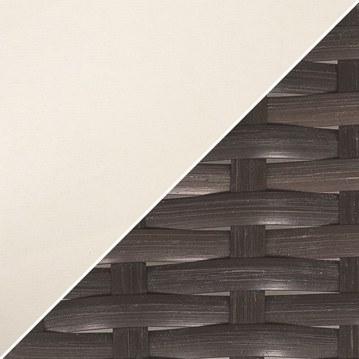 - Material: Tempered glass, synthetic rattan, fabric, powder-coated steel