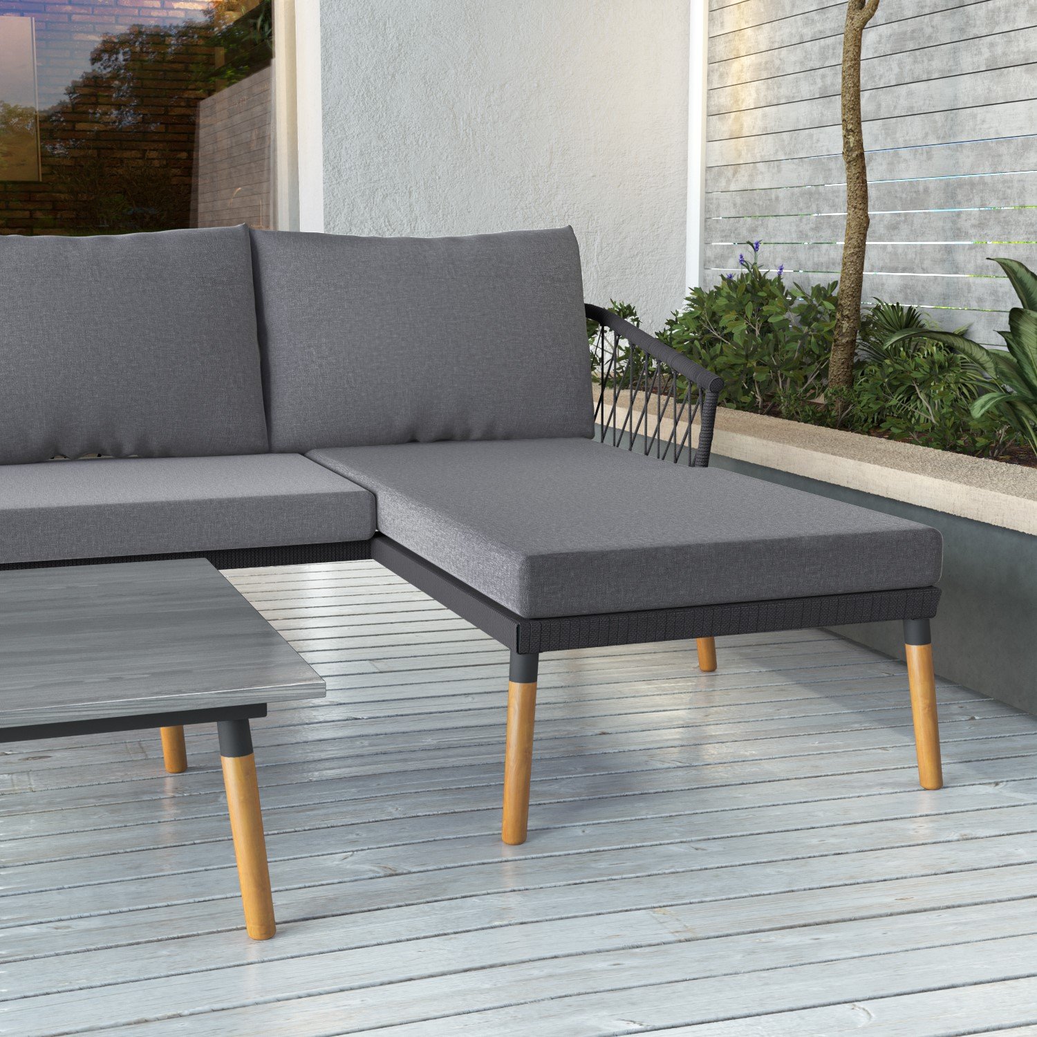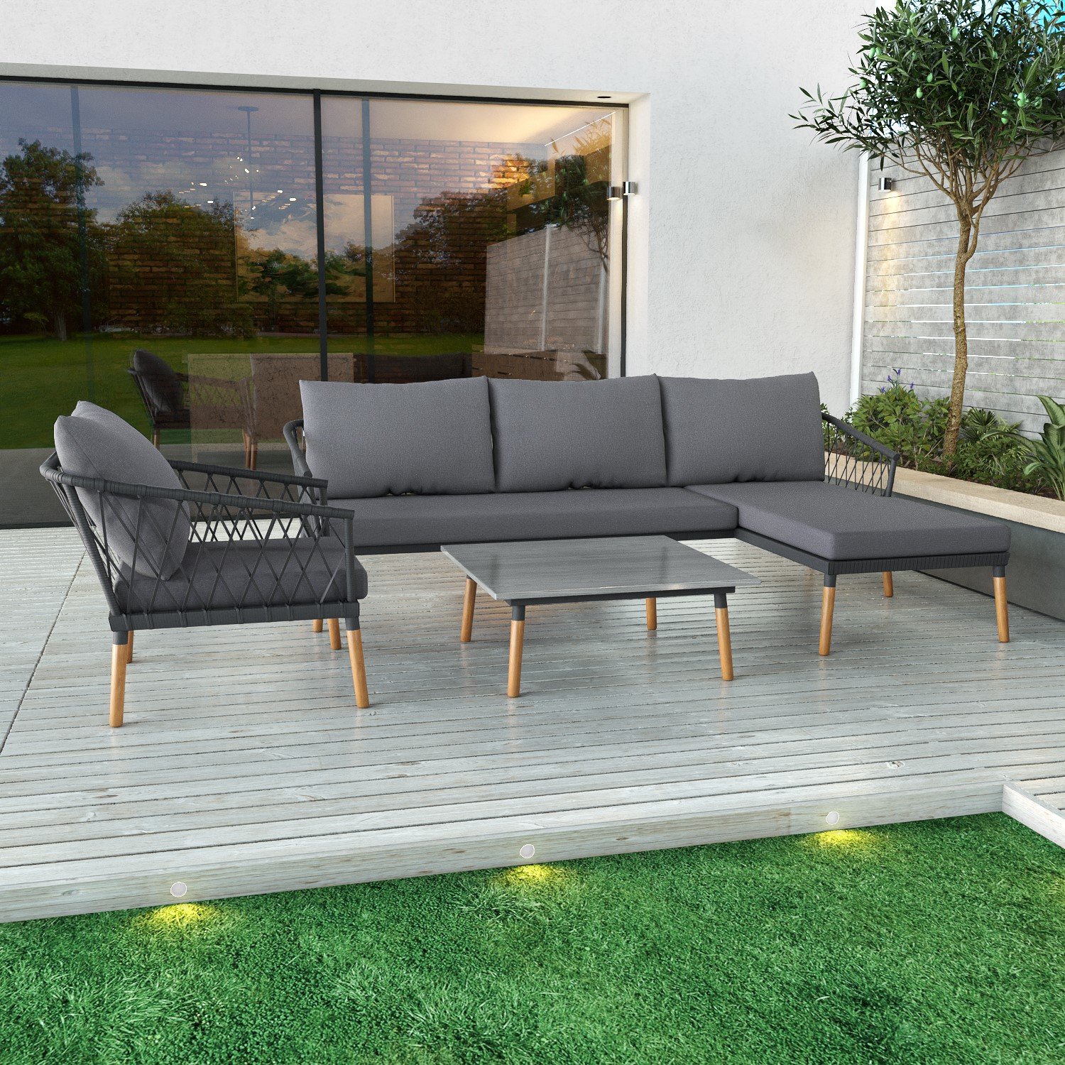 4 Seater Grey Garden Corner Sofa Set with Armchair and Table – Como