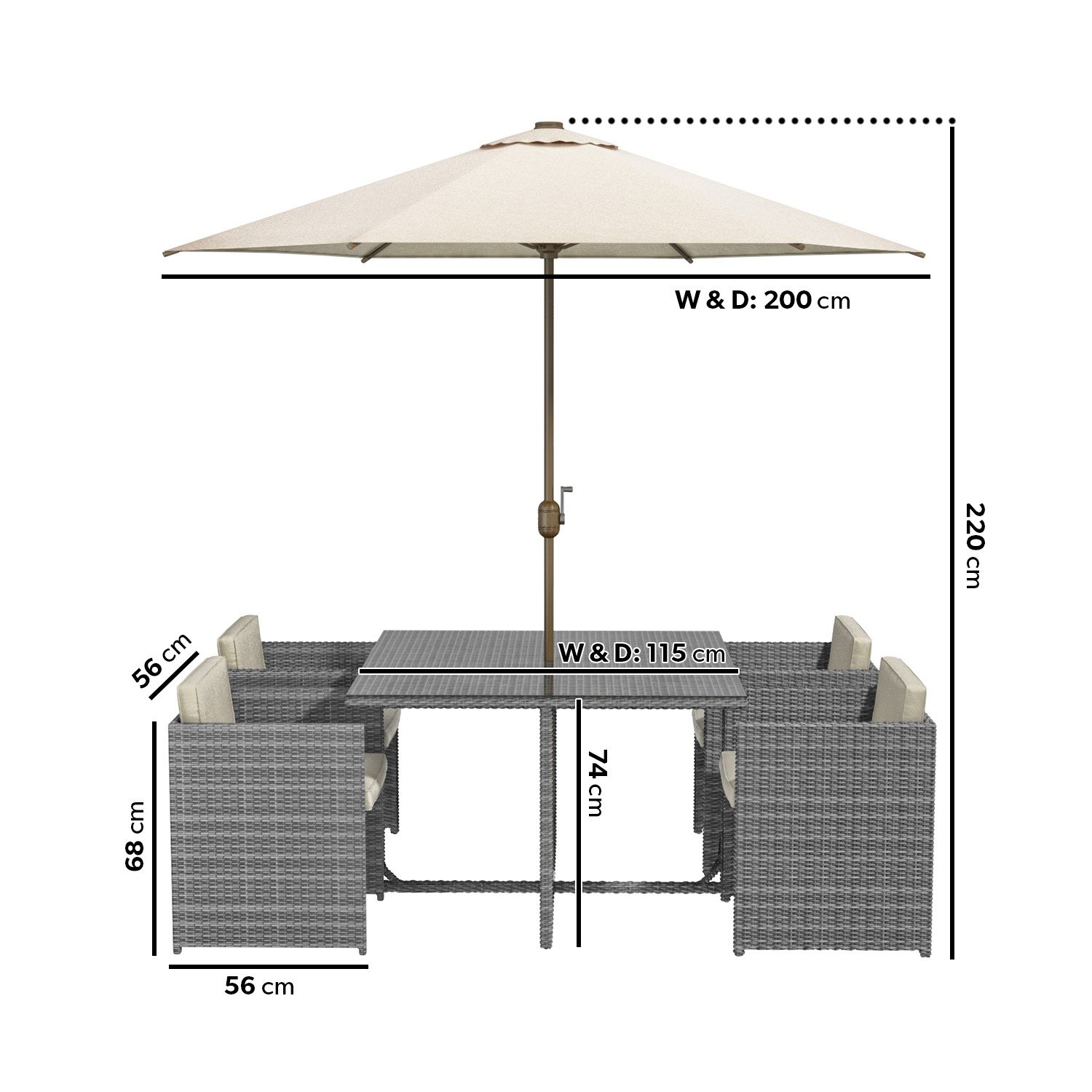 - Parasol dimensions: H220 x W200 x D200 cm