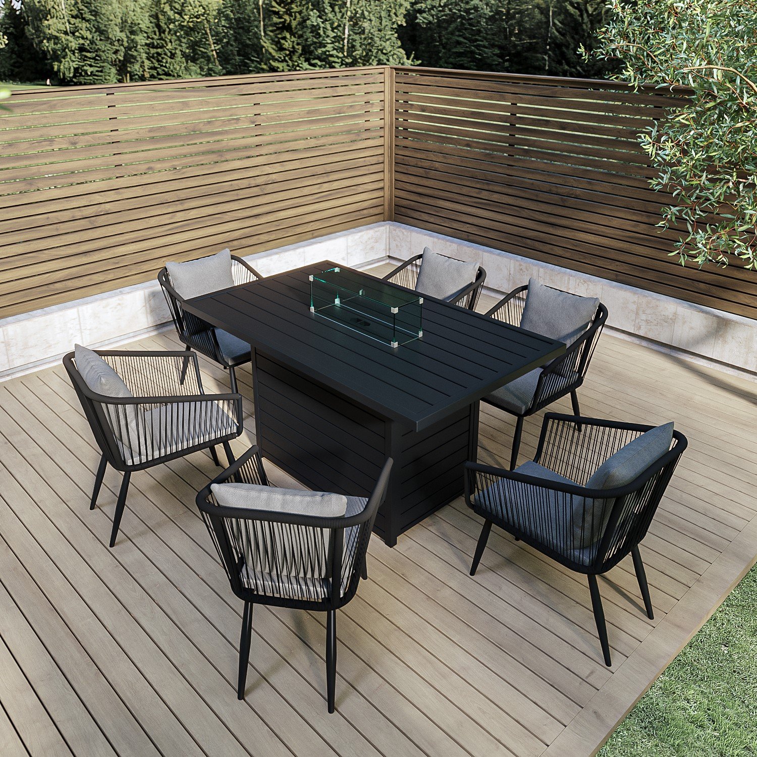 6 Seater Grey Aluminium & Rope Dining Set with Firepit Table – Como