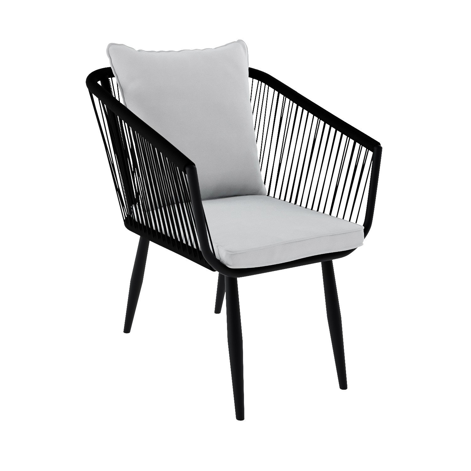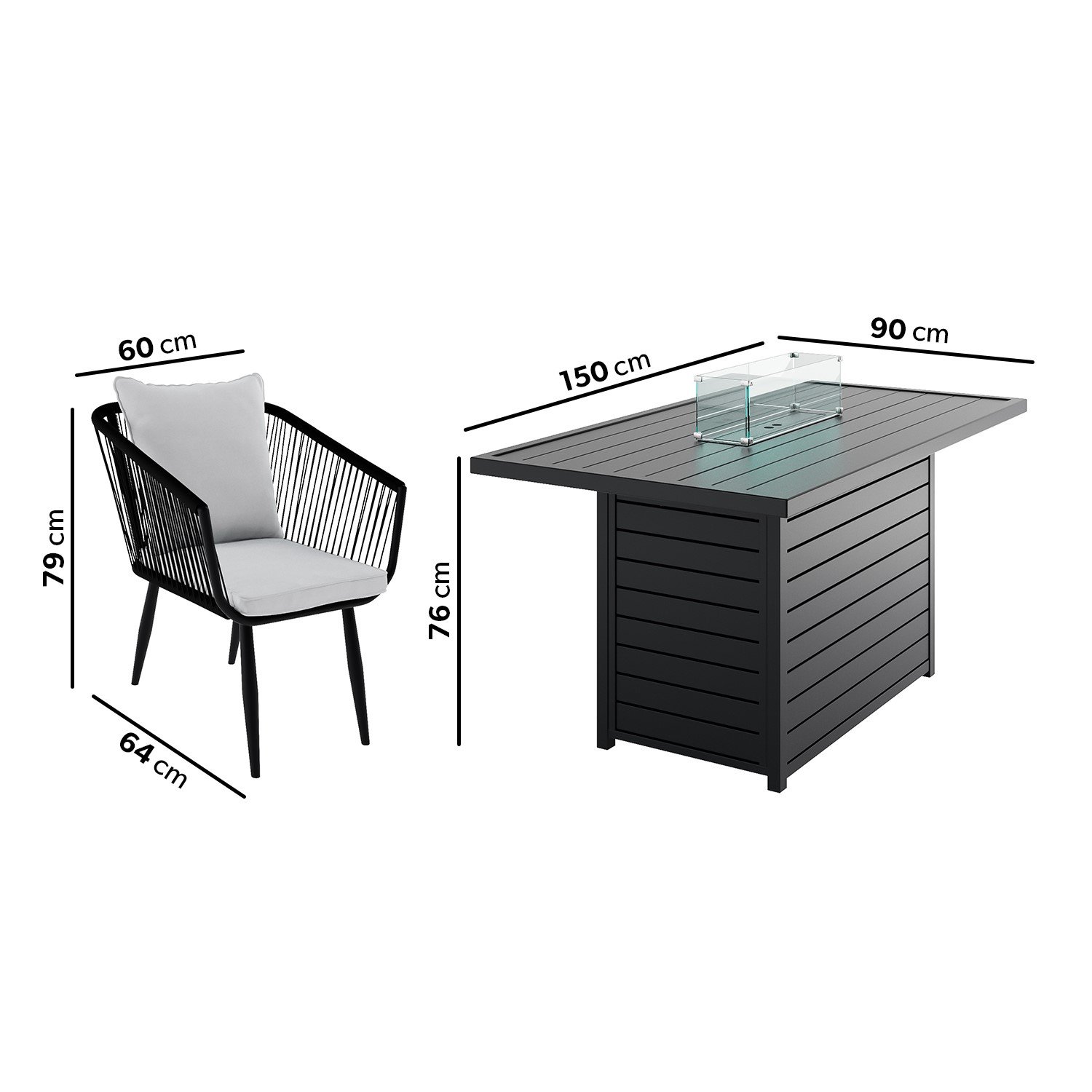 Enjoy outdoor entertaining with friends and family with this contemporary garden set. Dine by day, then convert the table to a fire pit and settle into the evening, whatever the temperature. A control panel allows you to adjust the heat, plus the flames are protected from wind and for safety by a glass surround. Made from aluminium and entwined rope woven and wrapped over frames to create the chair backs and armrests, give this set a designer look.