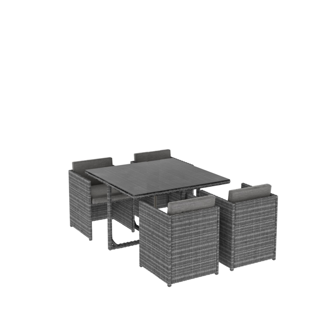 Enjoy garden dining and entertaining with our stylish 8-seater cube dining set. It’s a versatile option thanks to its compact design; once you’ve finished, the footstools fit under the seats, then they all tuck neatly underneath the table to form a tidy cube shape – saving space and looking neat and stylish when its not in use. The footstools are ideal for when you have extra guests, with space for upto 8 people to sit together – or allow you to lay back and relax in the sun!