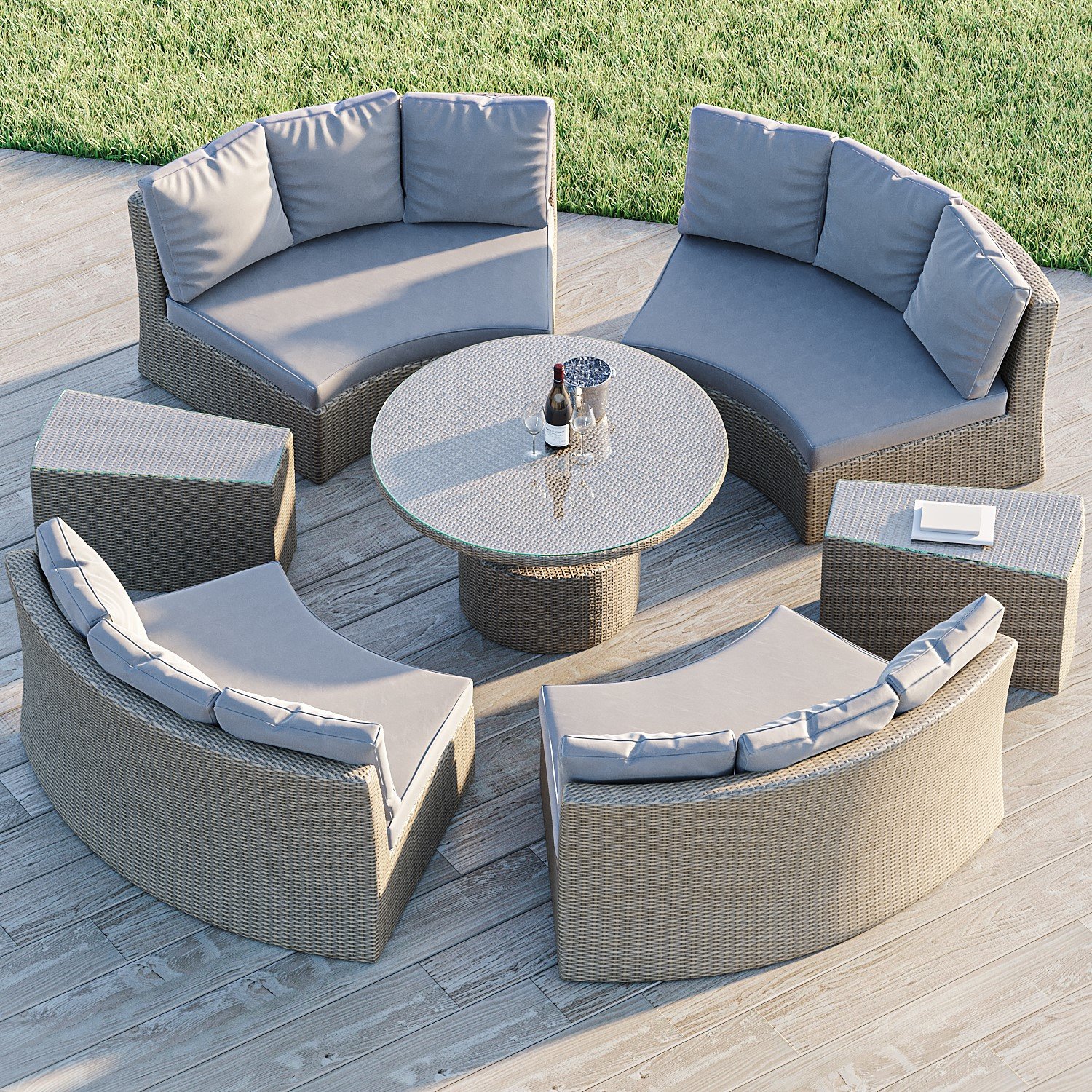 8 Seater Rattan Modular Circular Dining Sofa Set with Height Adjustable Table – Fortrose