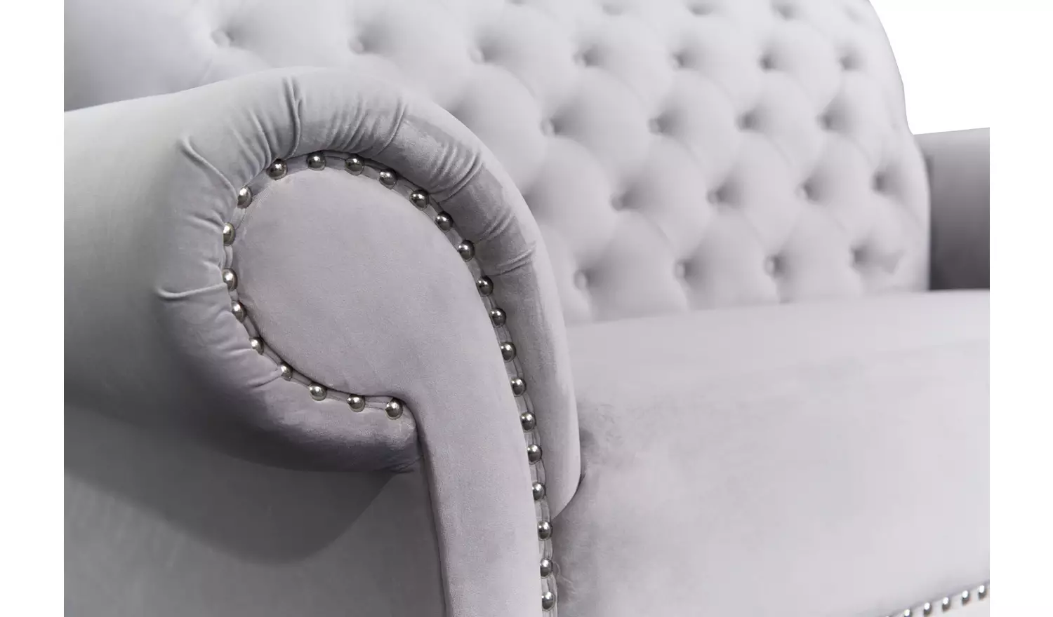 There’s never a dull moment with the show home trend. Collections like the Chelsea were simply made to be talked about. With a chrome button back and velvet style finish it’s not one to blend into the background. The big scroll arms feature carefully placed studs that accentuate the curve and add some extra shine.