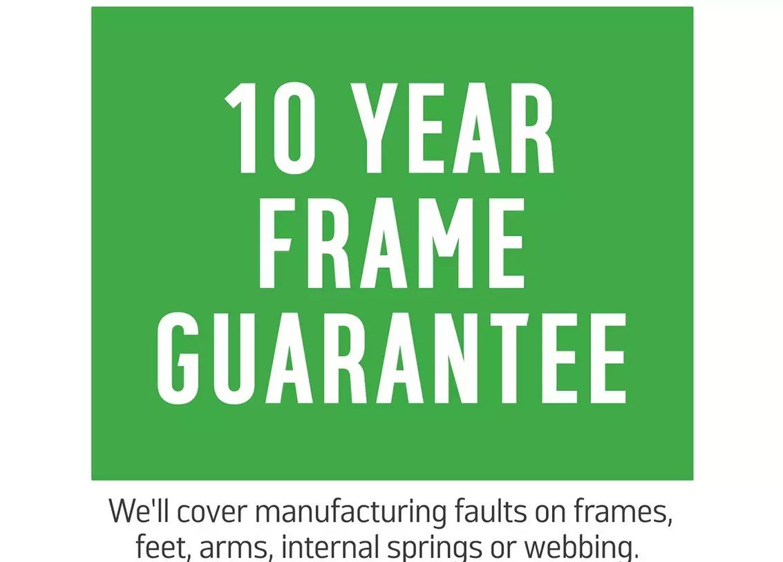 This sofa comes with a 10 year frame guarantee. We’ll cover manufacturing faults on frames, feet, arms, internal springs or webbing. We can arrange a repair, replacement, exchange or refund.