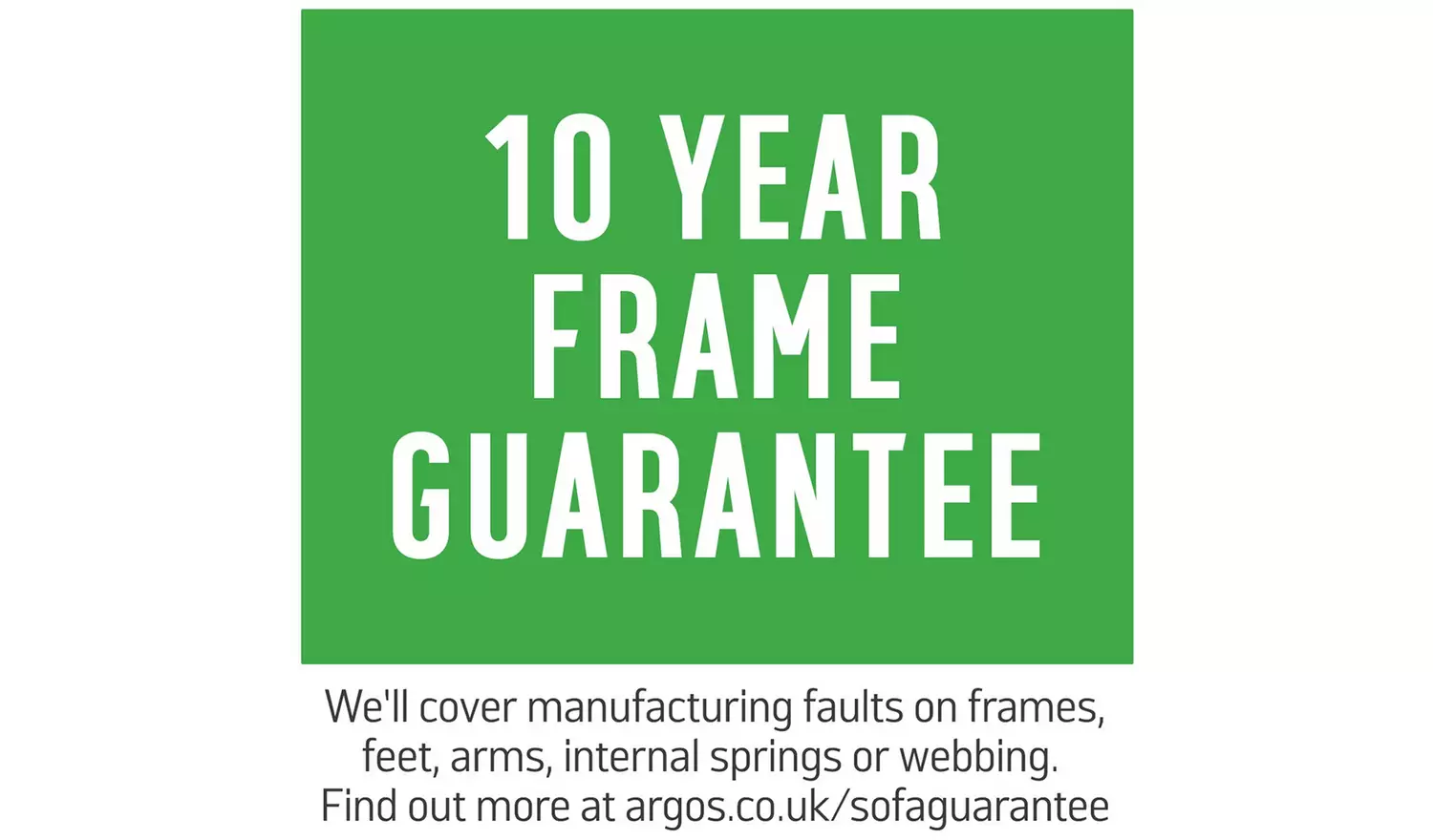 This sofa comes with a 10 year frame guarantee. We’ll cover manufacturing faults on frames, feet, arms, internal springs or webbing. We can arrange a repair, replacement, exchange or refund.