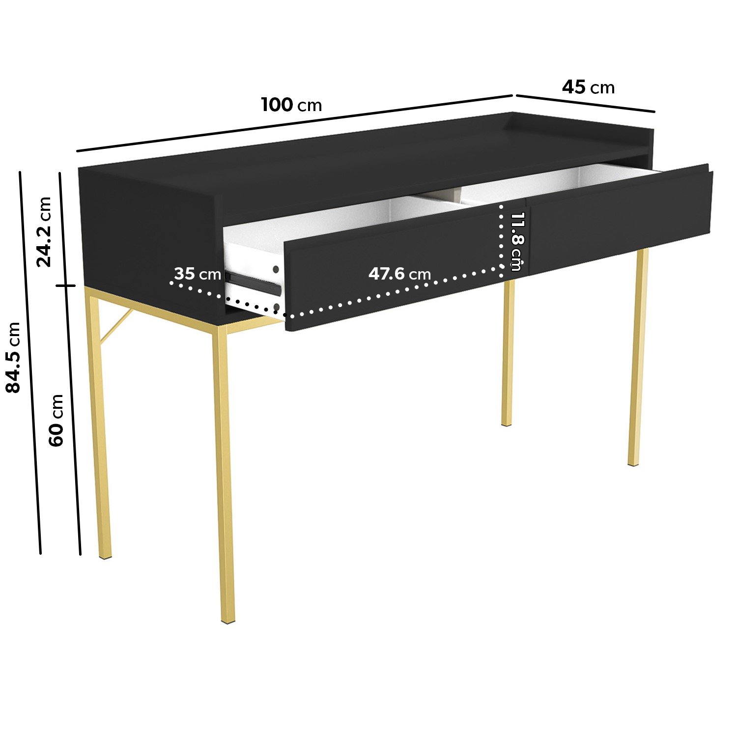 Black Dressing Table with 2 Drawers and Gold Legs – Zion