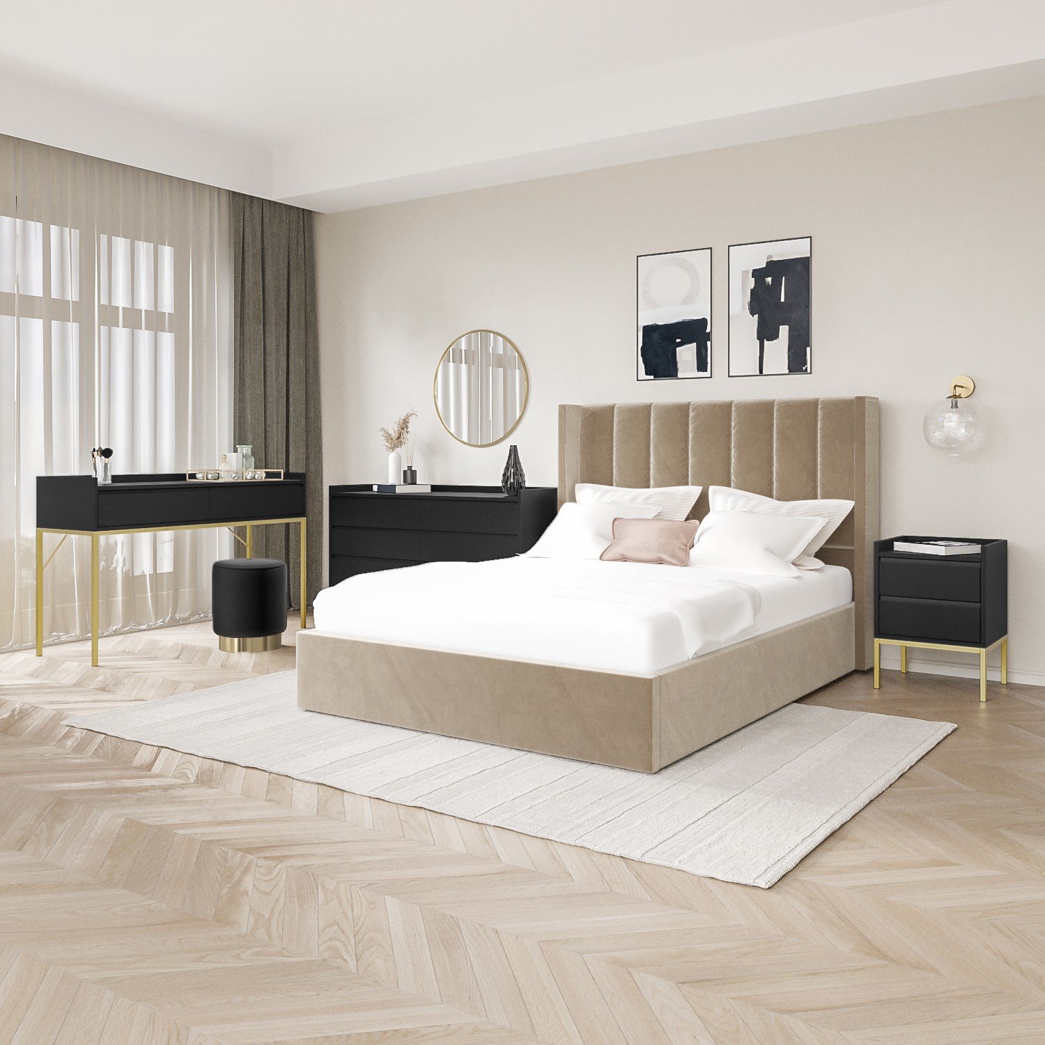 • Matt black dressing table with gold legs