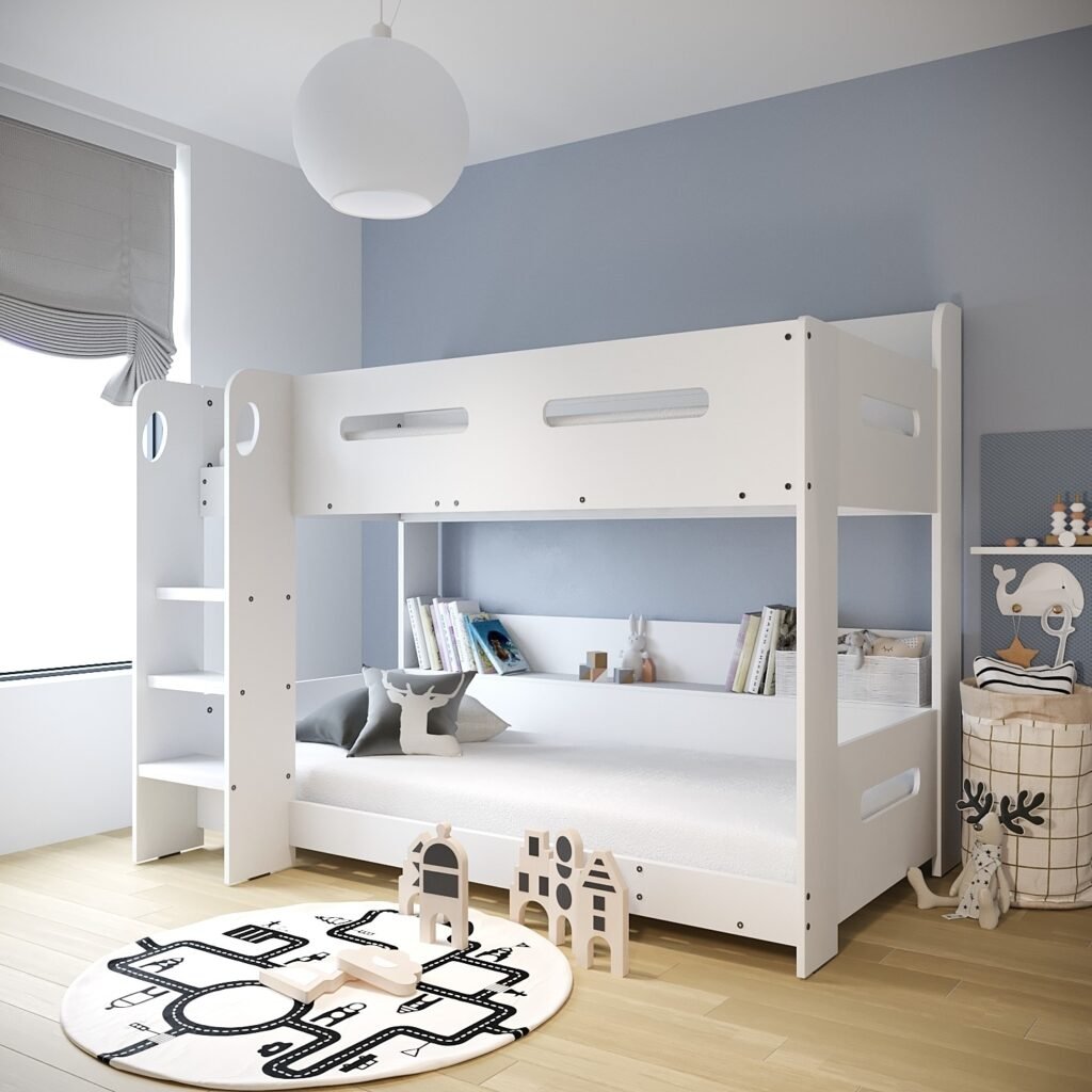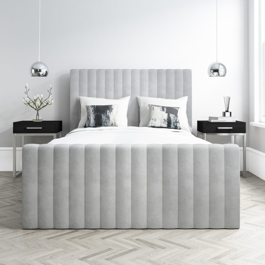 Cream Fabric Double Ottoman Bed with Legs – Amara