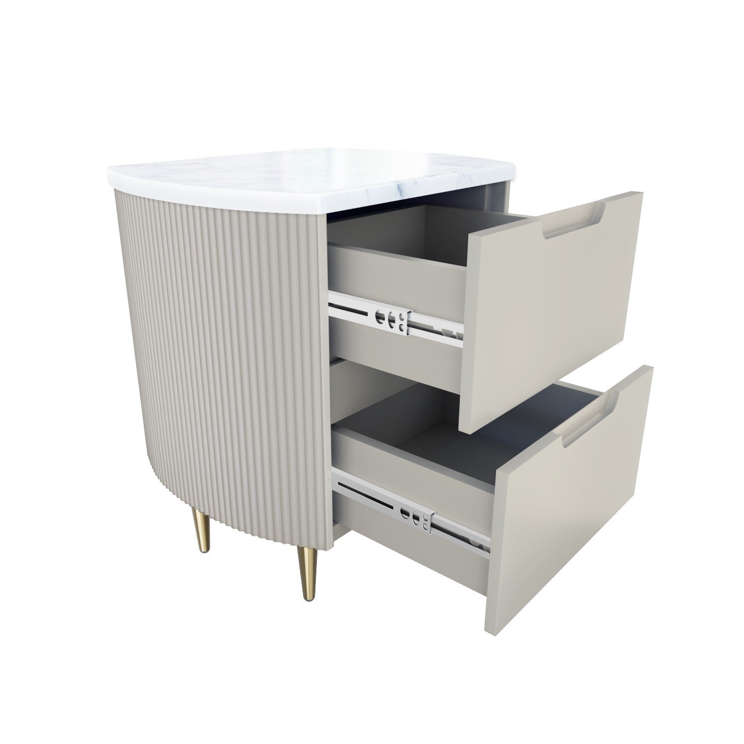Curved Taupe 2 Drawer Bedside Table with Marble Top – Lorenzo