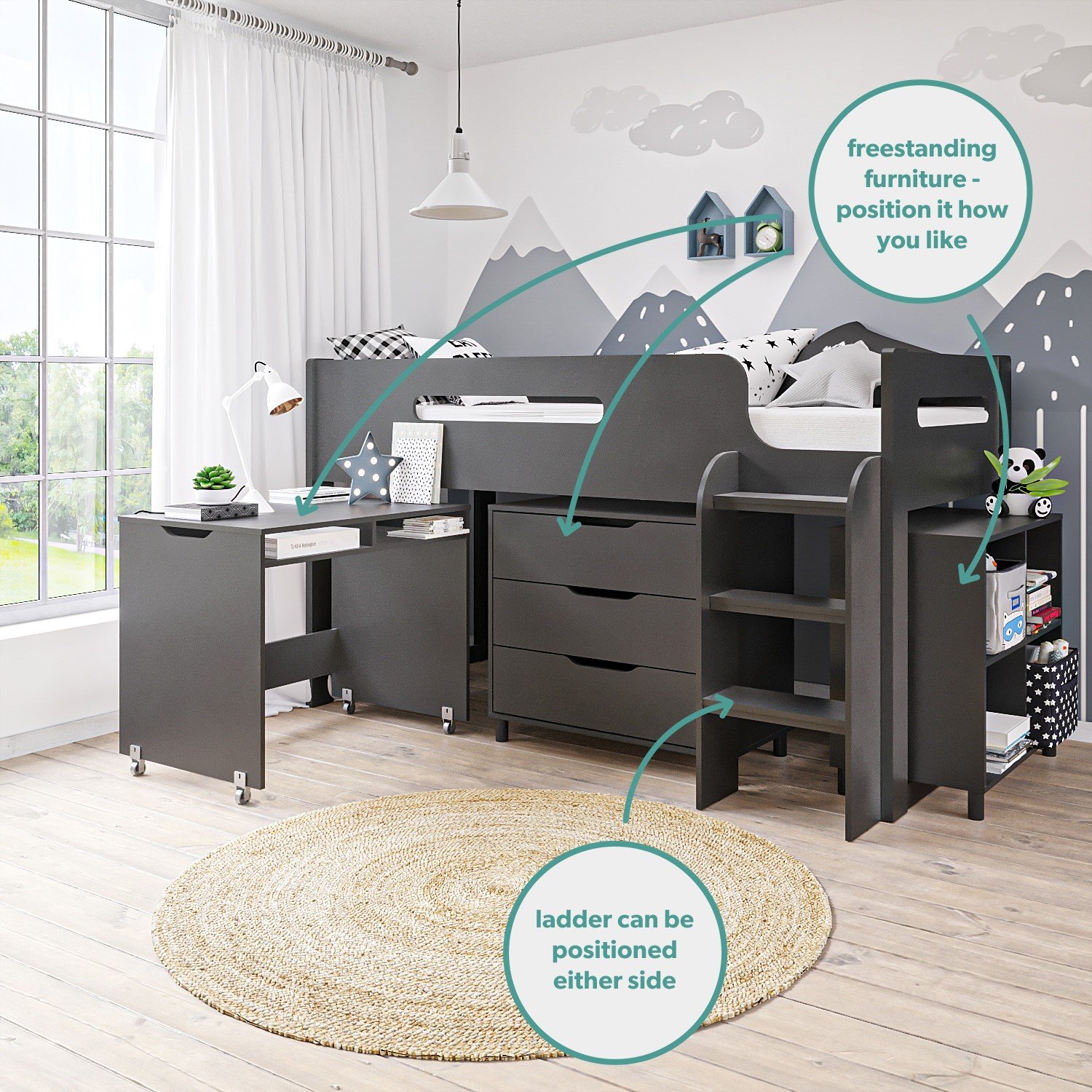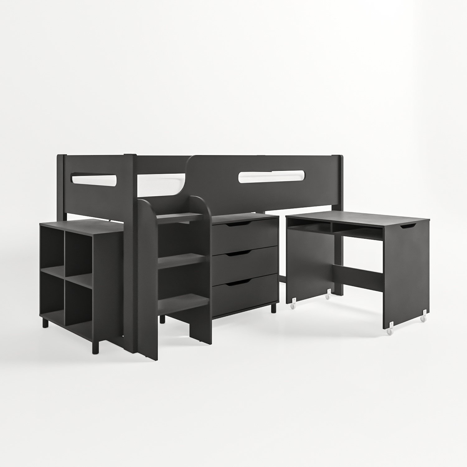Dark Grey Mid Sleeper Cabin Bed with Storage and Desk – Dynamo
