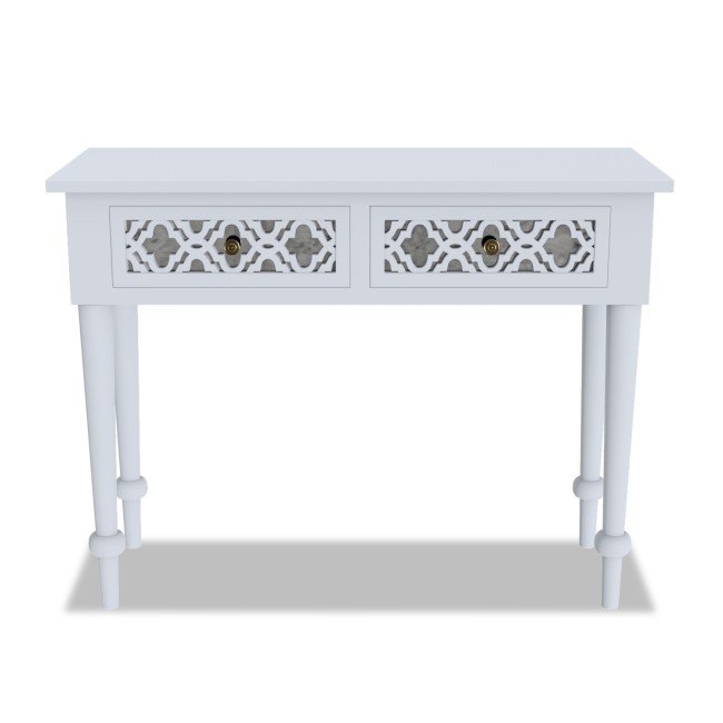 The Alexis dressing table features an on-trend painted grey finish and 2 spacious drawers with stylish antique brass handles. It arrives fully assembled, so you can unpack and use straight away. Complete the look with other pieces from our stunning Alexis collection.