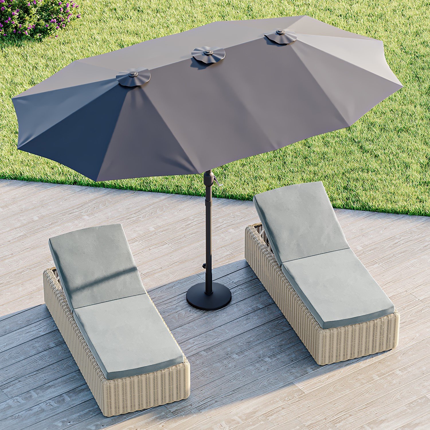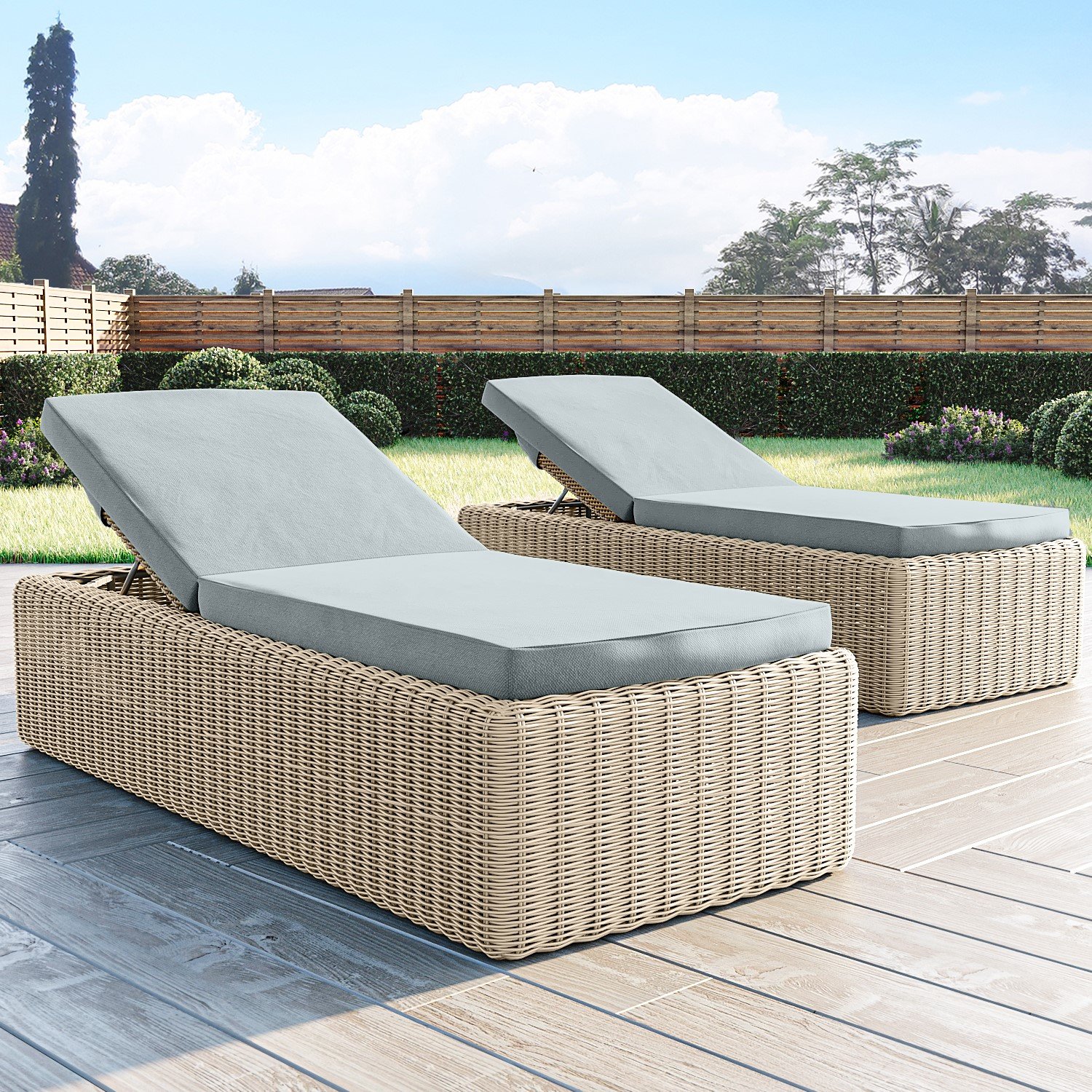 Grey Sun Lounger Set of 2 – Aspen- Rattan adjustable sun loungers