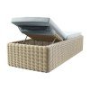 - Finish: Upholstered cushions and rattan base