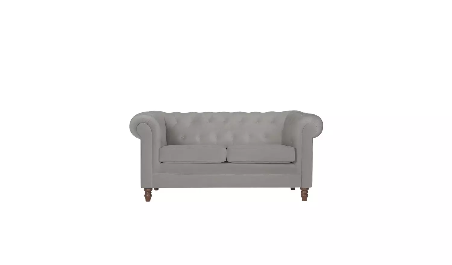 An iconic piece. Classic and timeless, the Habitat Chesterfield 2-seater sofa boasts a scroll arm design with sumptuous deep buttoning on the back panel and arms. It’s beautifully upholstered in a velvet-effect fabric for a truly luxurious feel. It stands on real wood feet for the perfect finishing touch.