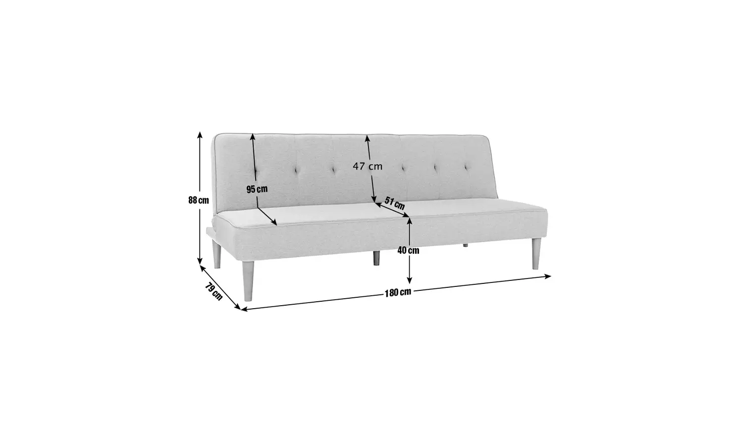 - Sofa size H88, W180, D79cm (Depth as bed 180cm).