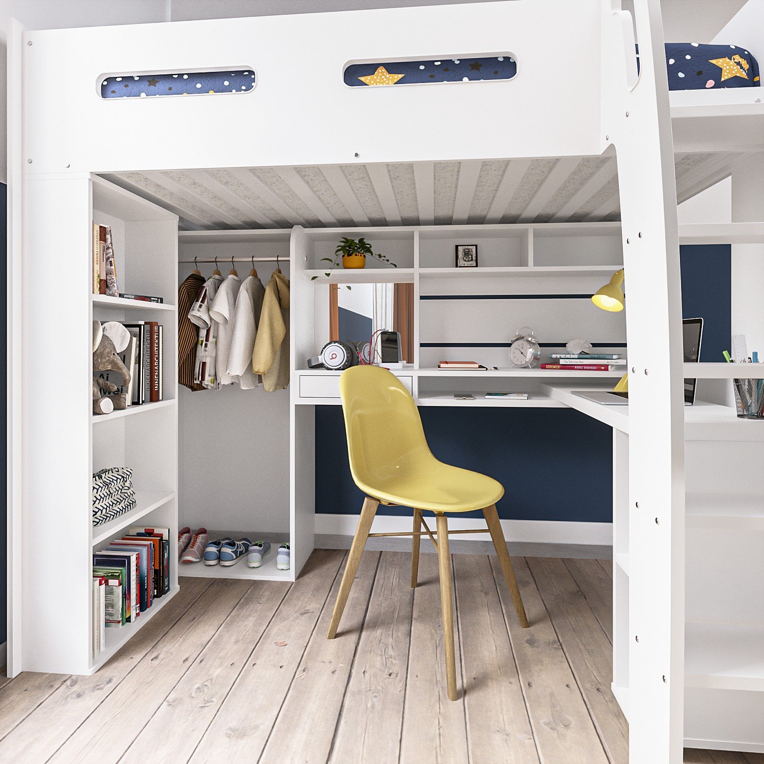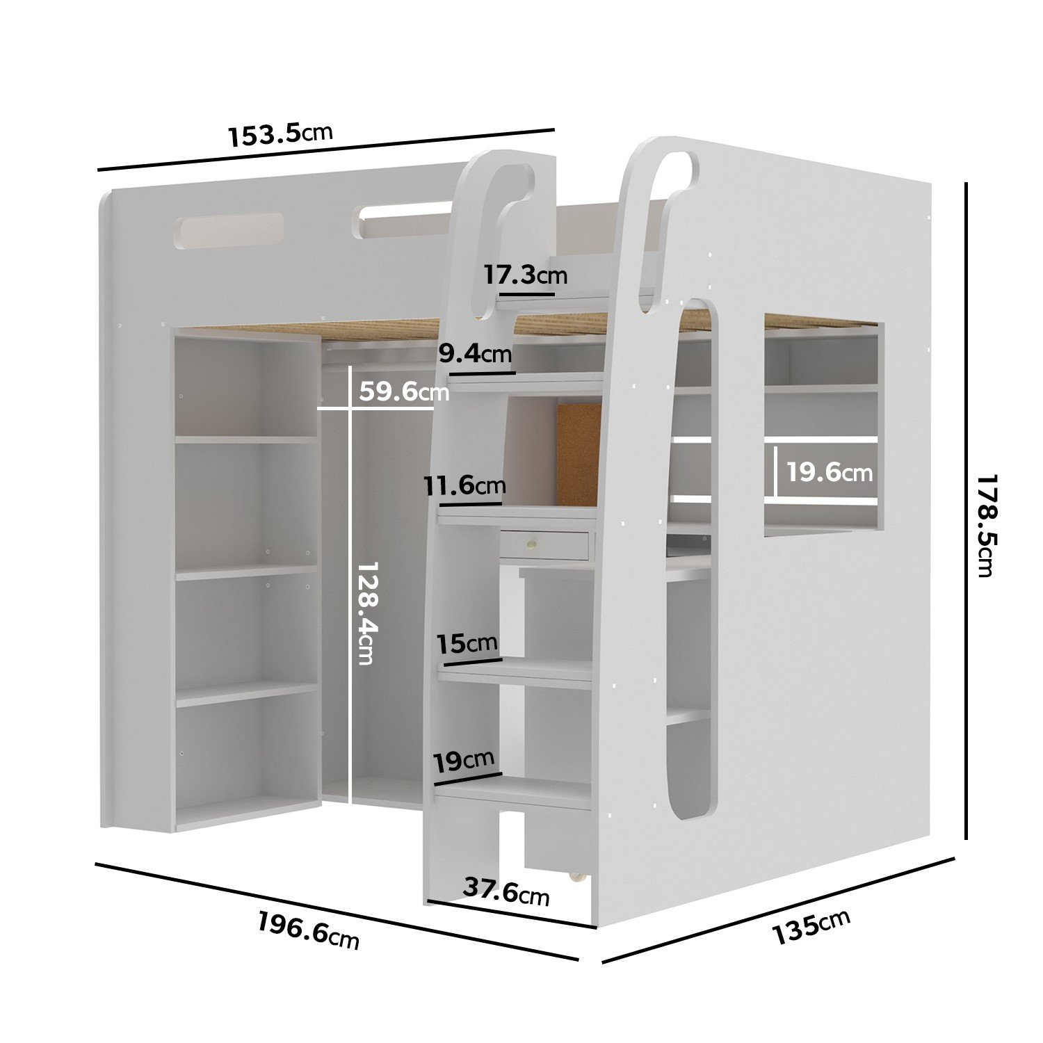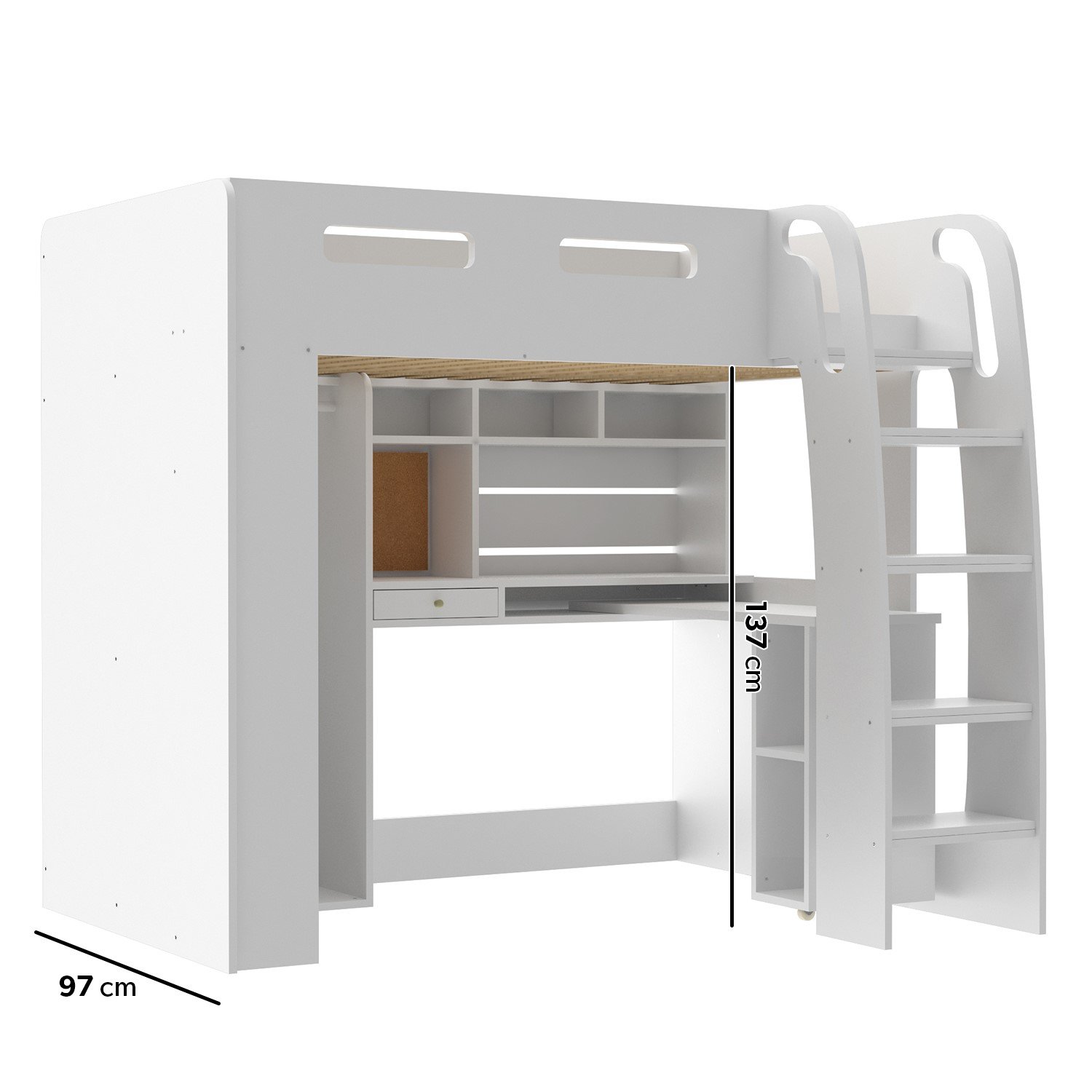 High Sleeper Loft Bed with Desk and Wardrobe in White – Carter