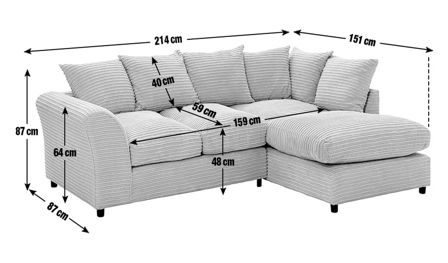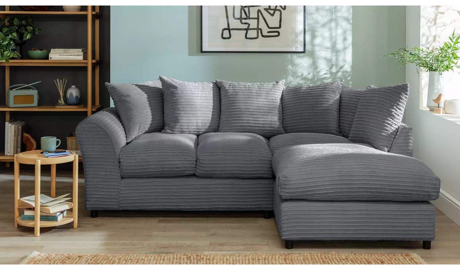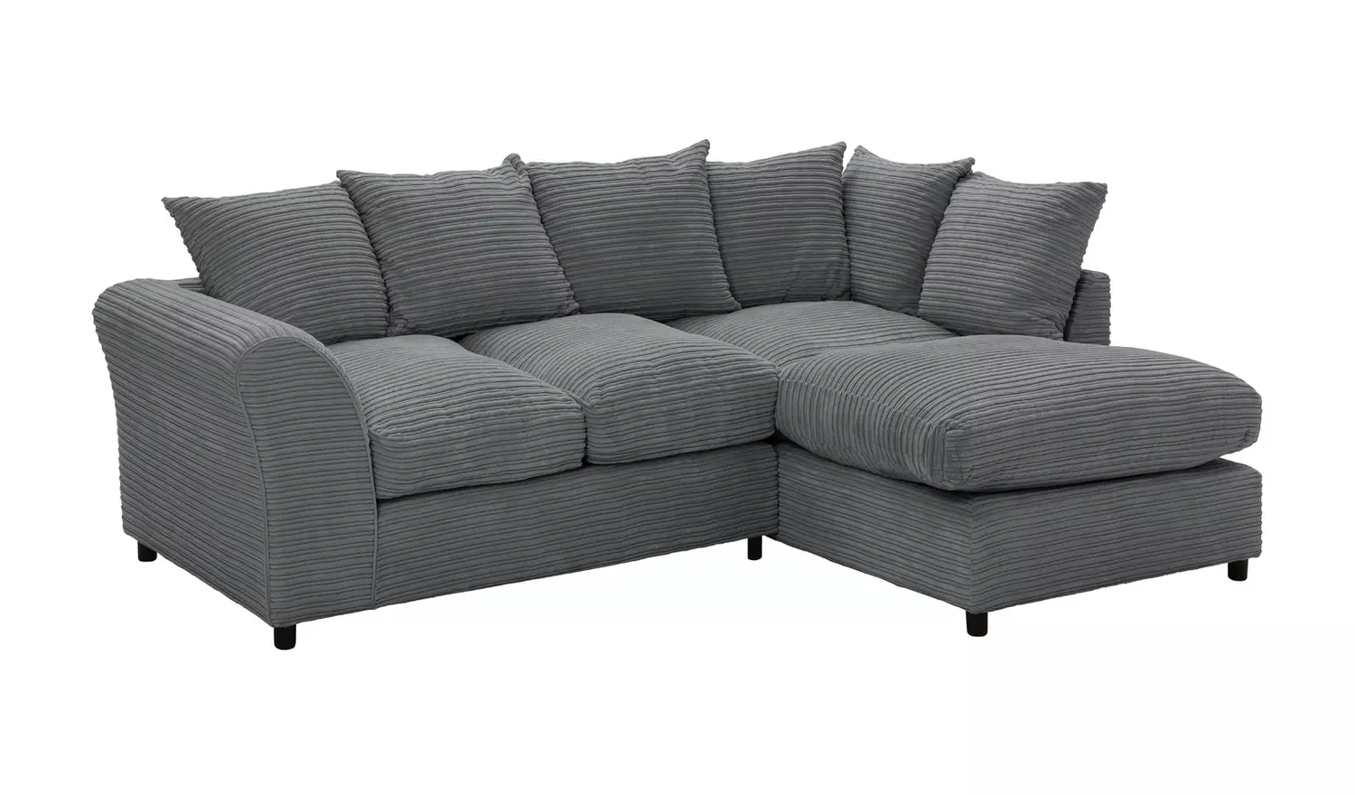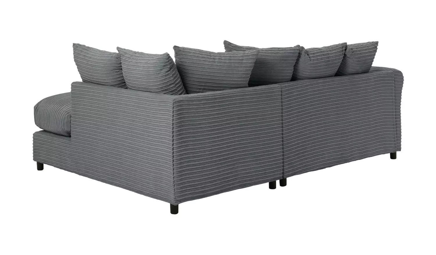 The Harry right corner sofa is all about comfort. Sit, lay back, or curl up. The large, foam-filled cushions are softly accommodating. Upholstered in jumbo cord, it’s a brilliant buy for a modern space. The matching charcoal-coloured cushions complete the look.