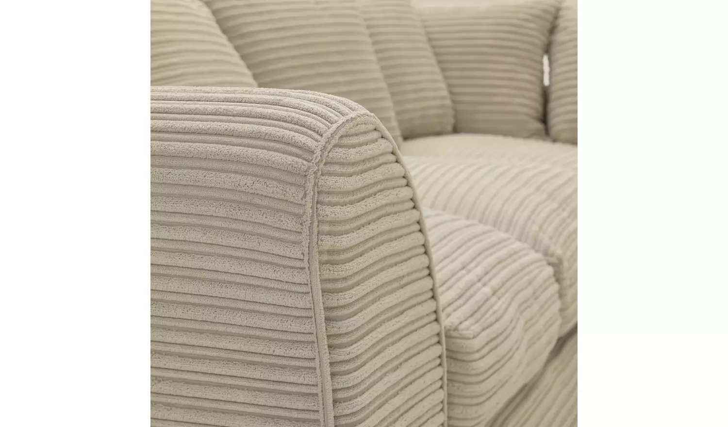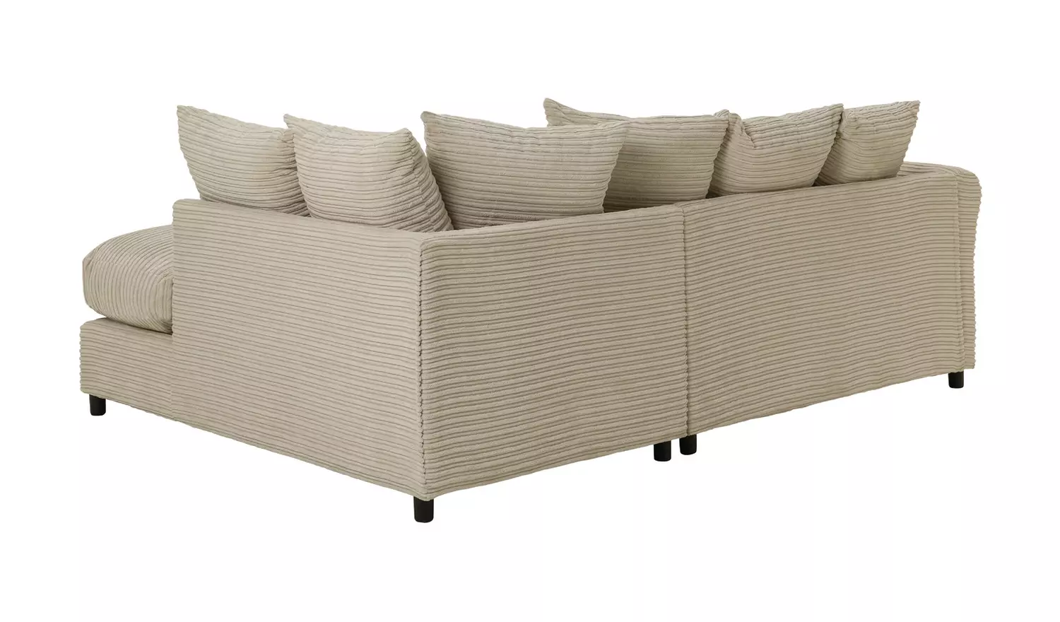 Our easy-going Harry right hand corner sofa is all about everyday comfort. Sit, lay back, or curl up. It’s roomy enough for everyone. The large, foam-filled cushions are softly accommodating. Upholstered in stone coloured jumbo cord, it’s resistant to wear and tear so a brilliant choice for families. Two matching scatter cushions finish the look.
