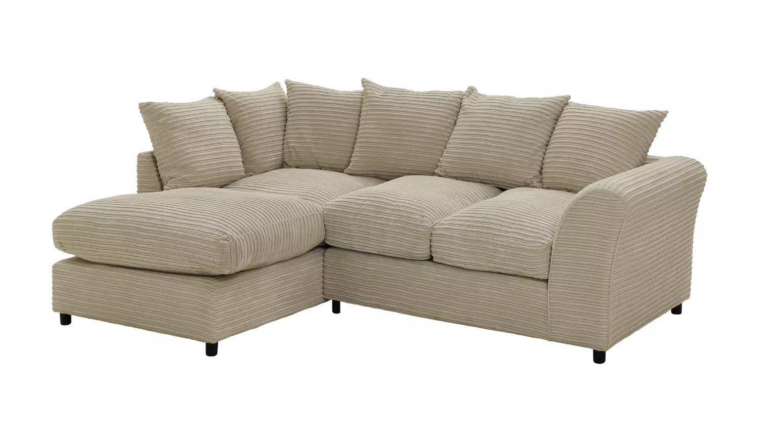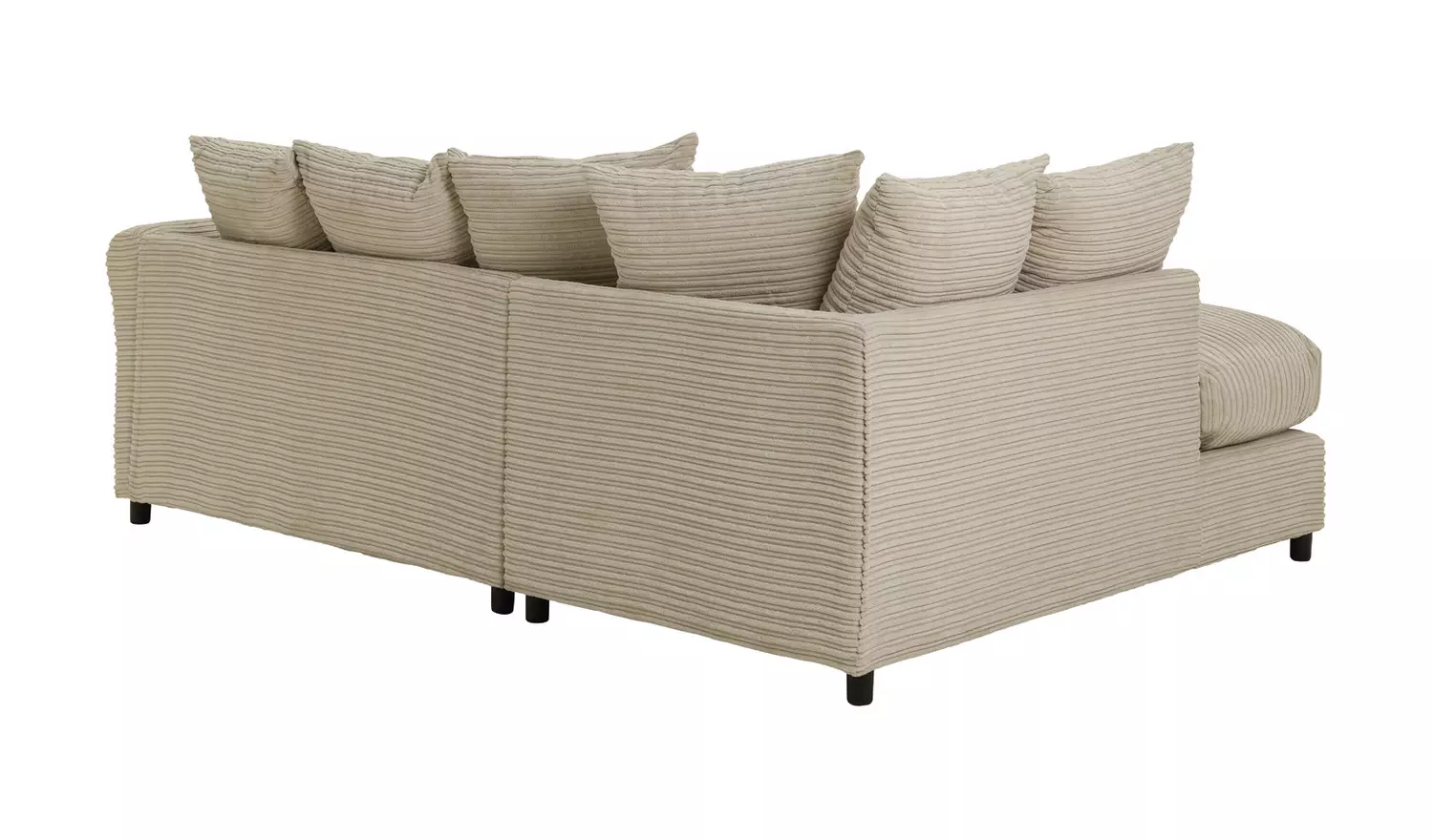 The easy-going Harry left corner sofa is all about everyday comfort. Sit, lay back, curl up, stretch out. The large, foam-filled cushions are softly accommodating. Upholstered in jumbo cord, it’s resistant to wear and tear. Which makes it a brilliant choice for families. Comes with 6 matching stone-coloured scatter cushions.