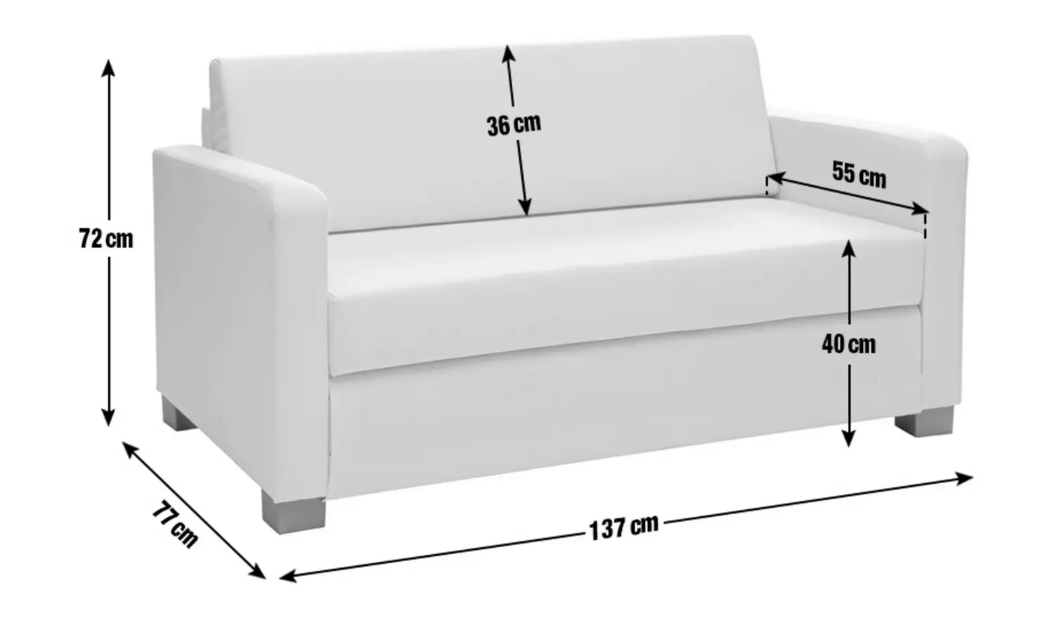 - Sofa size H72, W137, D77cm (Depth as bed 200cm).