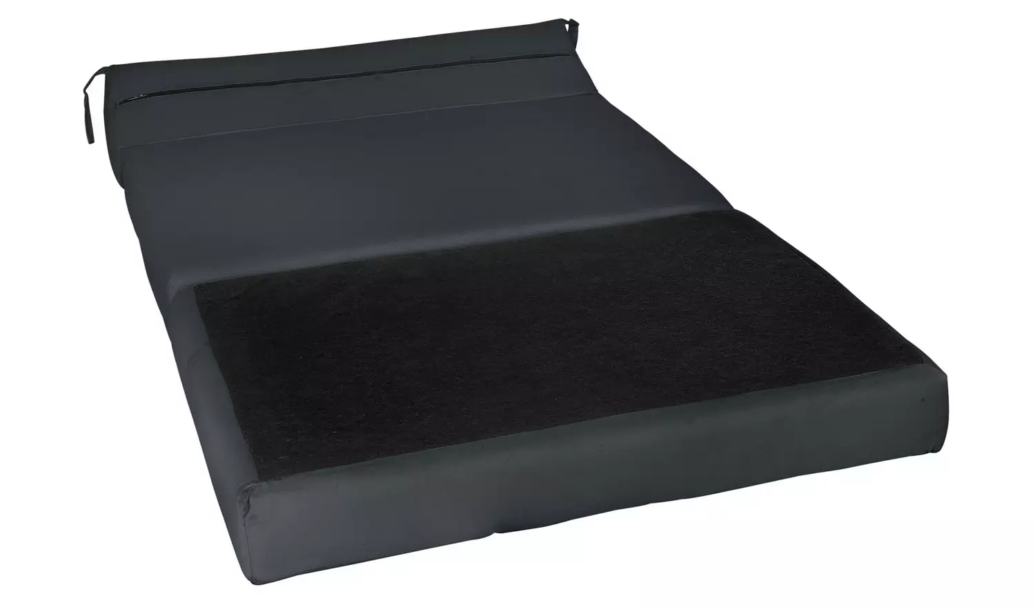 Its internal construction is made entirely from a dense foam that when opened out into a bed; makes a very comfortable mattress; ideal for occasional guests. Each side has ties and D-rings.