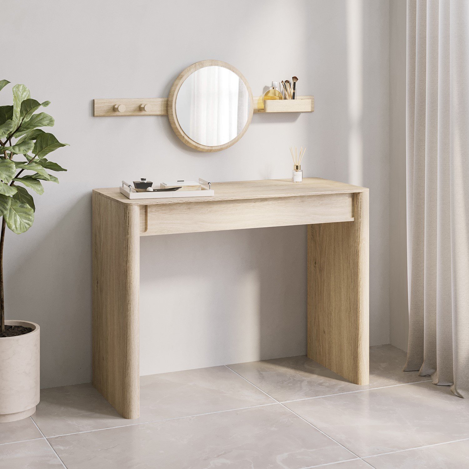 Light Wood Mid Century Dressing Table with Mirror – Emile Sustainable Furniture