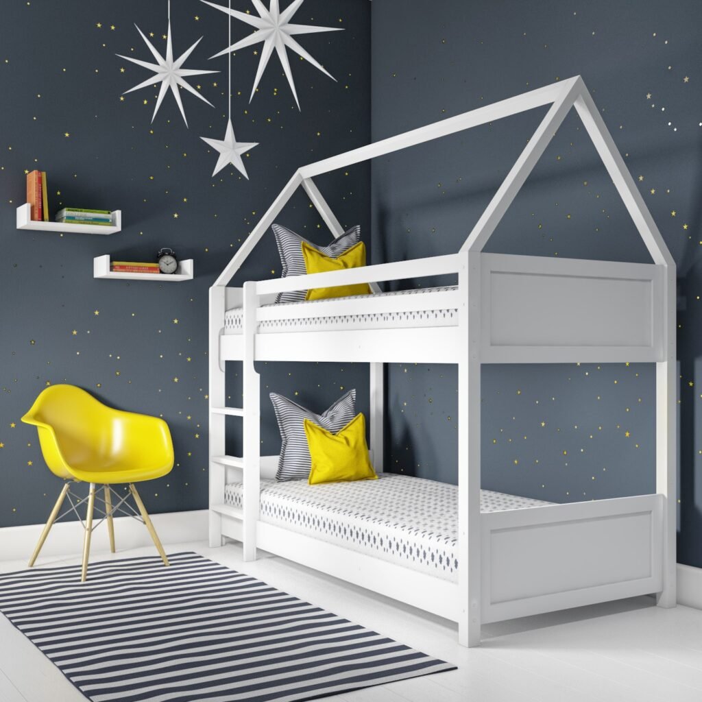This wooden house bed gives your children a fun space to sleep, play, and relax. It features a roof, which makes it cosy by night, and by day it makes it the perfect hideaway; your little one can get their imagination going. Why not personalize it with fairy lights, buntings, or decorative fauna? Made of solid pinewood, it’s durable, while the slatted base provides comfortable mattress support. It fits a UK single mattress, which isn’t included, so you’re free to select the mattress of your choice.