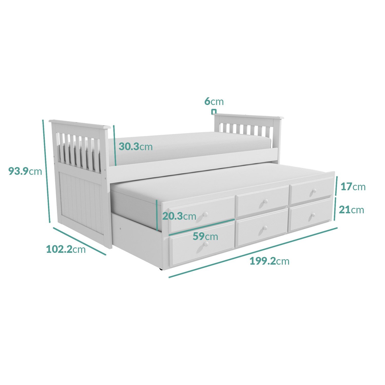 Single White Wooden Guest Bed with Storage and Trundle – Oxford