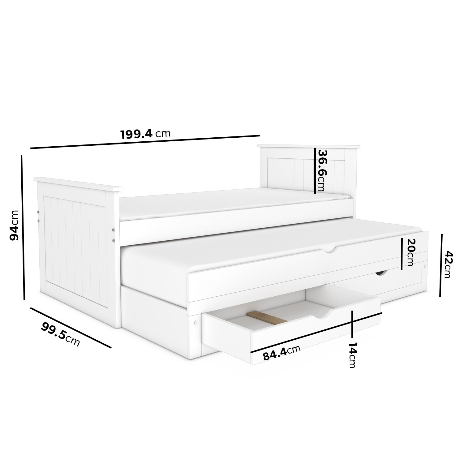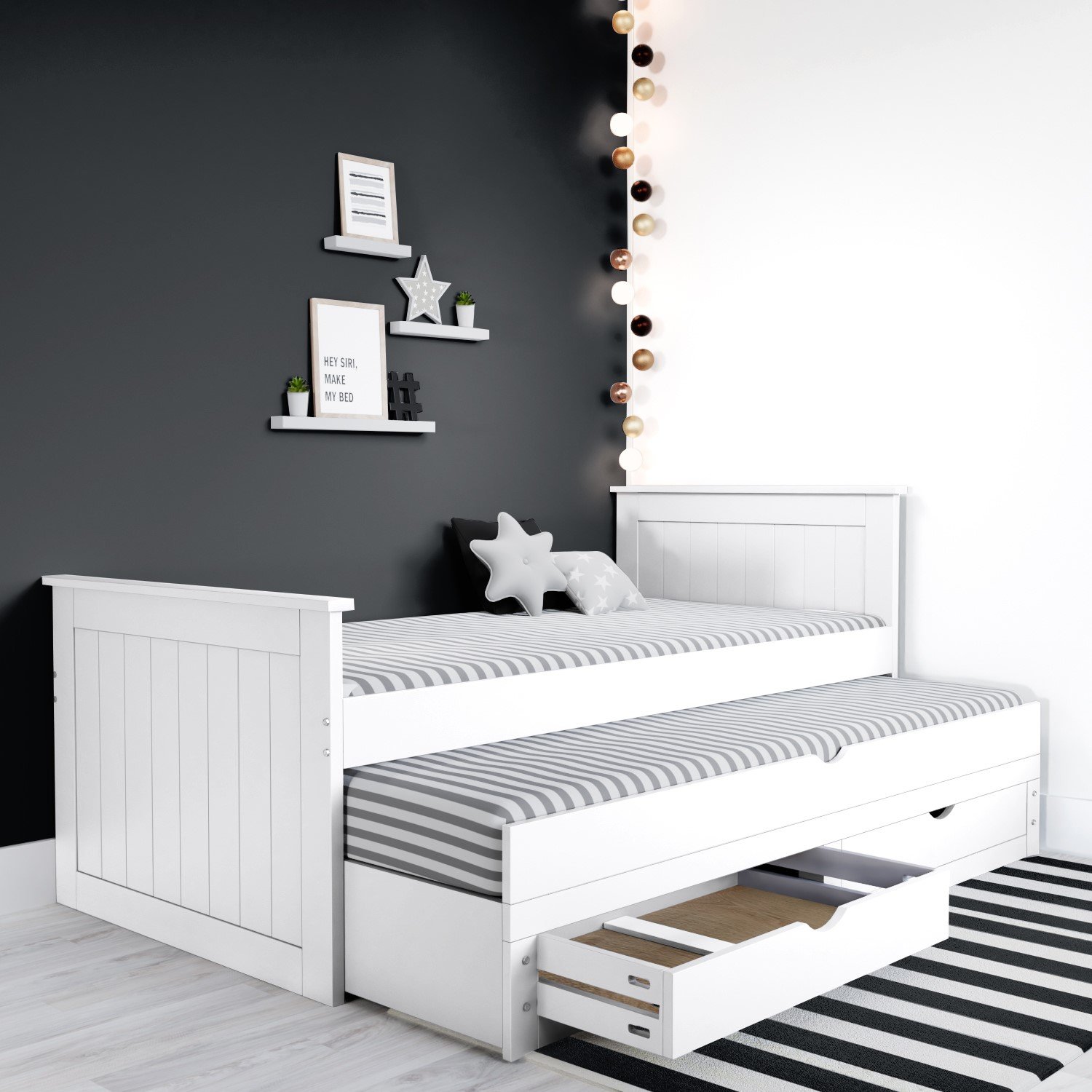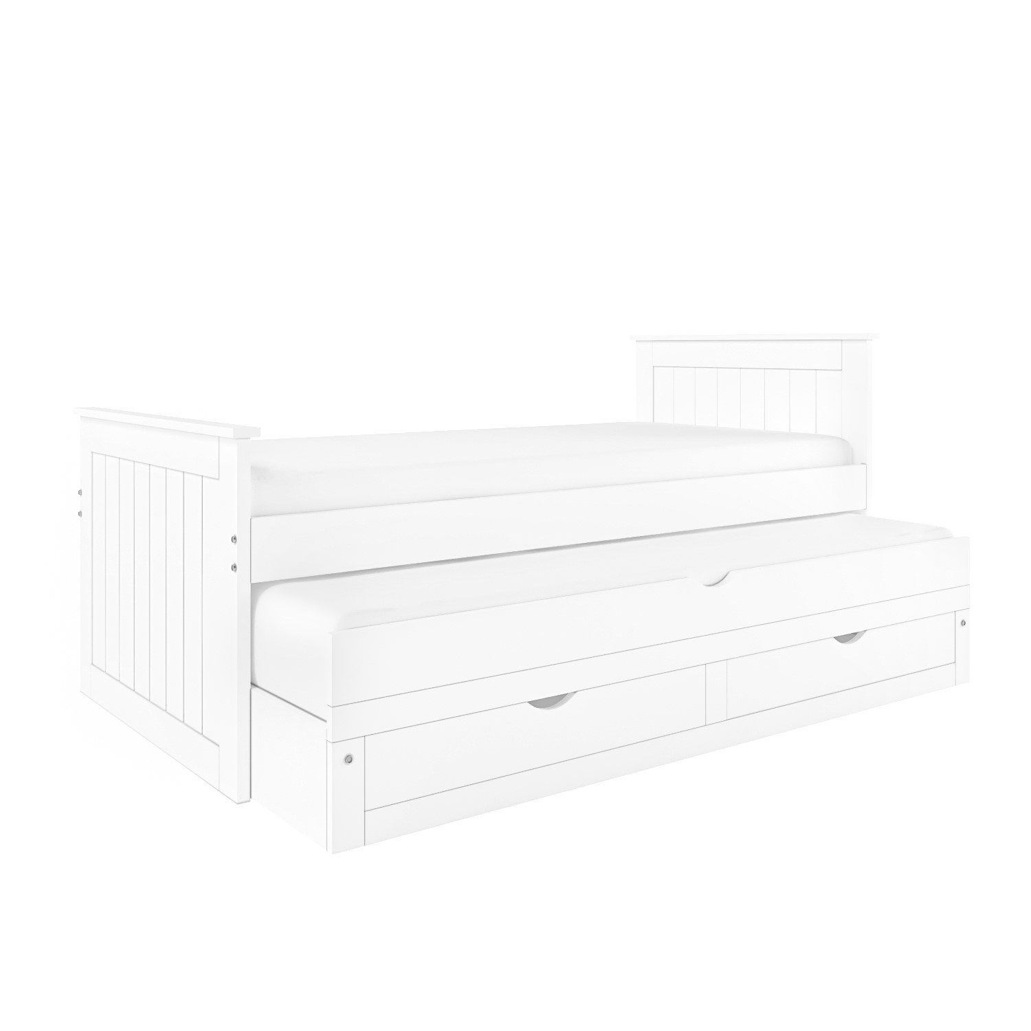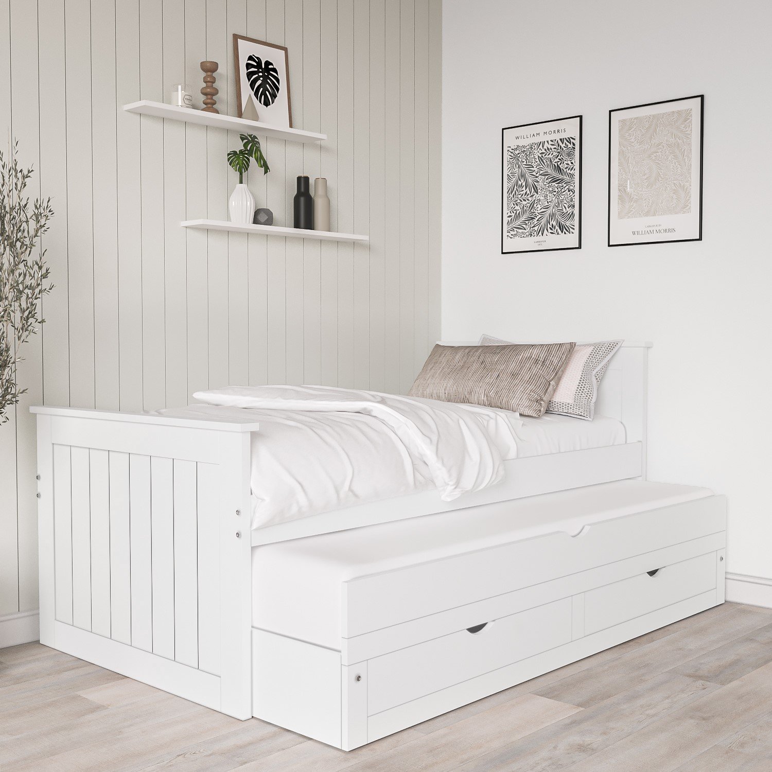Single White Wooden Guest Bed with Storage and Trundle – Sander