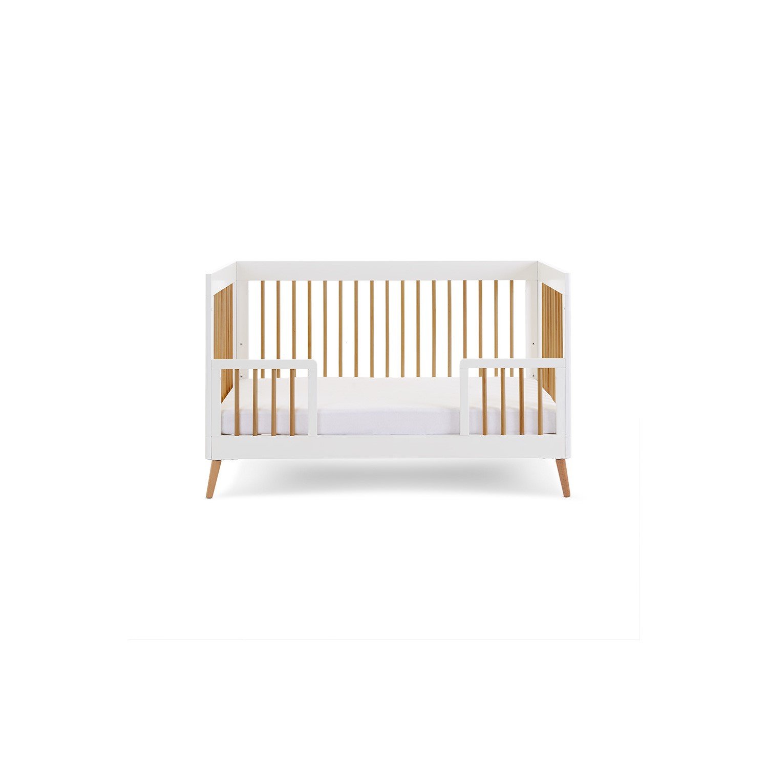 The Maya range from Obaby is inspired by Scandinavian design, featuring a clean-cut finish and two-tone colourway, making it the perfect addition for families looking to create a modern and stylish nursery. Suitable from birth, the Maya cot bed will grow with your little one. The top position of the three height-adjustable mattress base allows you to put down your baby with less pressure and strain applied to your back and as they develop and start to find their feet, you can maintain their safety by lowering the base. When your little one is ready to begin their transition, the included dual ended safety rail will provide reassurance and familiarity during an often daunting time and once they are used to their “big bed” this can be simply removed to create a stylish toddler bed.