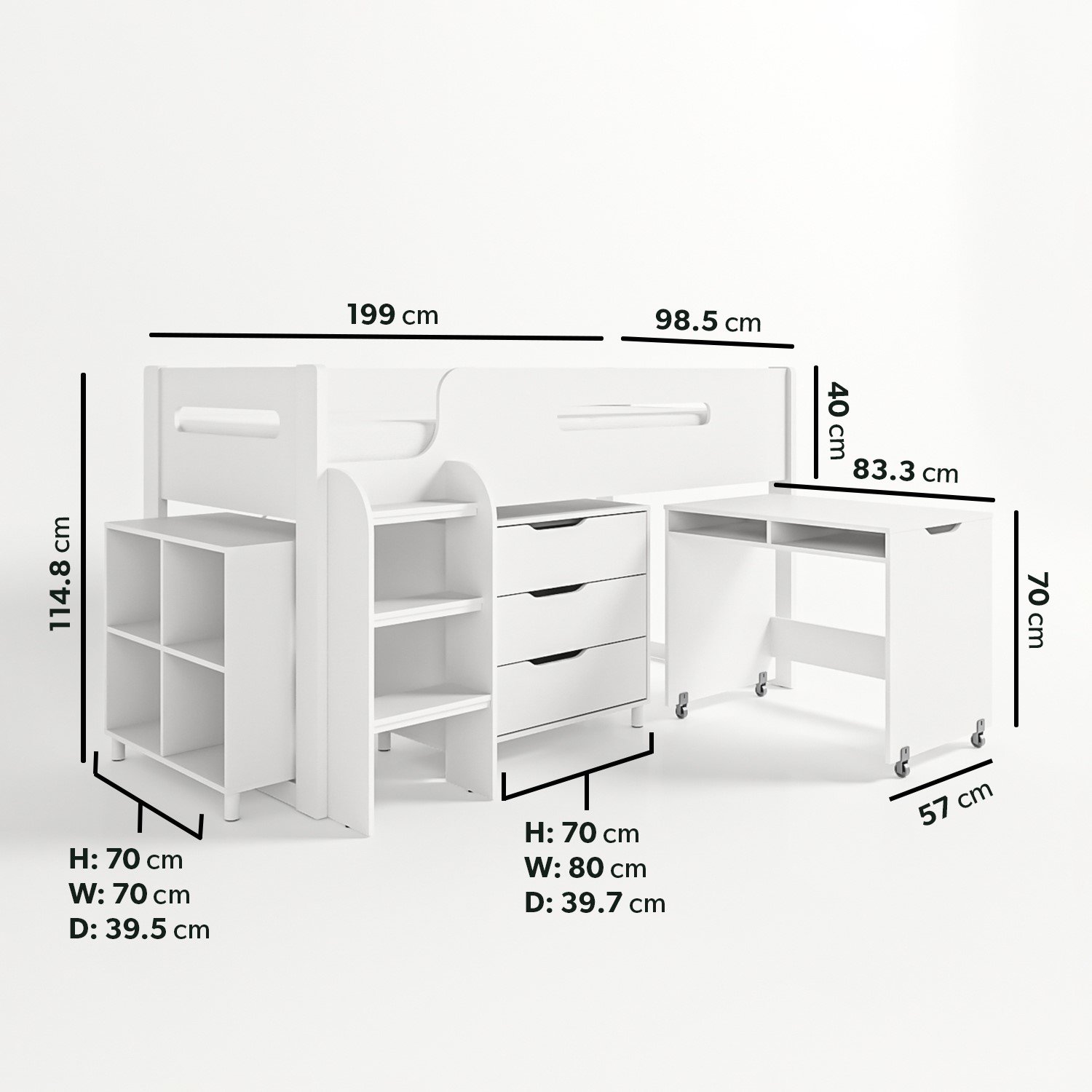 White Mid Sleeper Cabin Bed with Storage and Desk – Dynamo