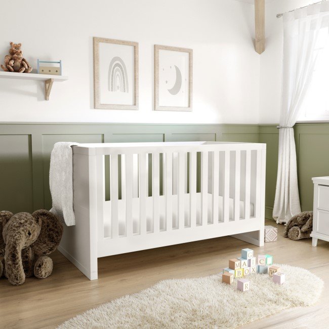 White Pine Nursery Furniture 2-Piece Set including Convertible Cot Bed and Changing Table – Mason